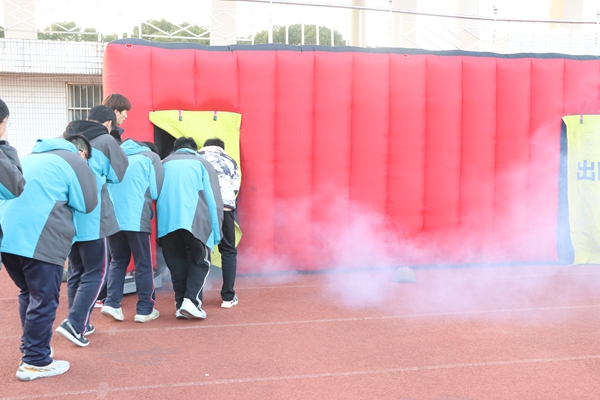 当天下午,高一、高二年级分批次、分班级在操场参加了“消防逃生与灭火演练”实战活动。在模拟真实火场环境的逃生帐篷内,同学们在工作人员的指引下,弯腰低姿、用湿巾捂住口鼻,冷静辨识安全出口标志,有序地完成了撤离。随后的灭火演练中,学生代表在专业人员的讲解与示范后,亲手操作灭火器,精准扑灭火苗,掌握了“提、拔、握、压”的操作要领。整个演练过程组织严谨、环环相扣,有效提升了师生在紧急情况下的心理素质与实战能力。