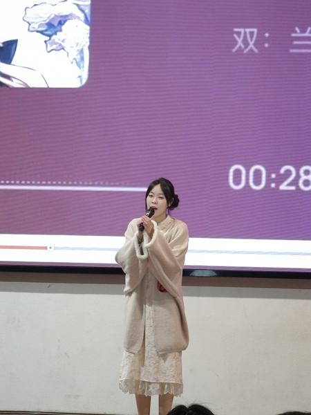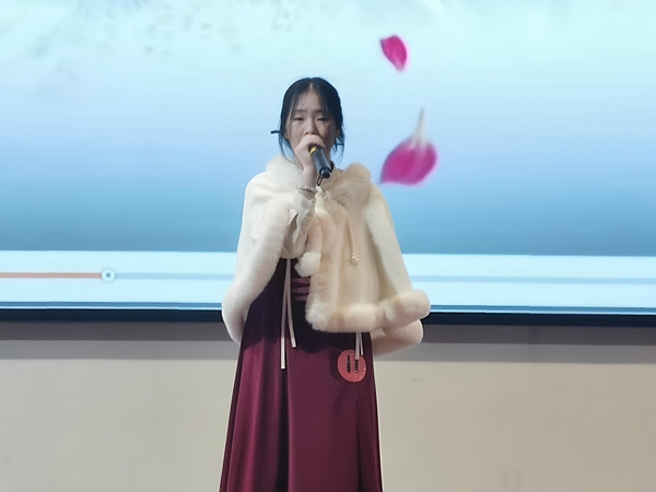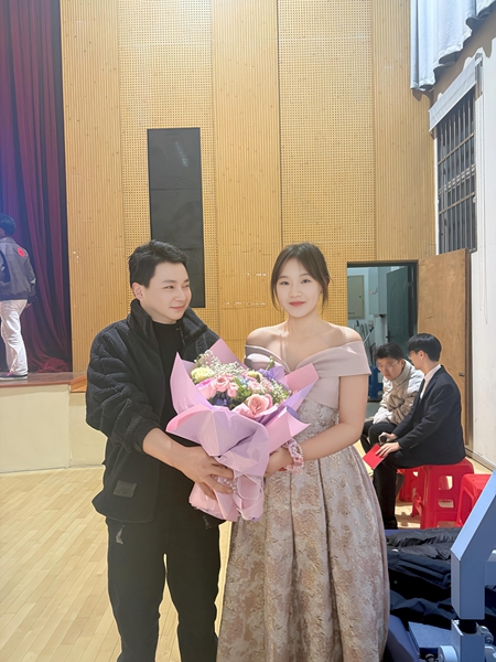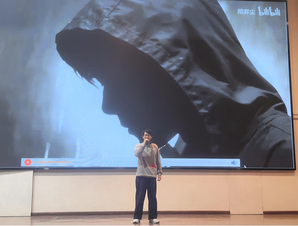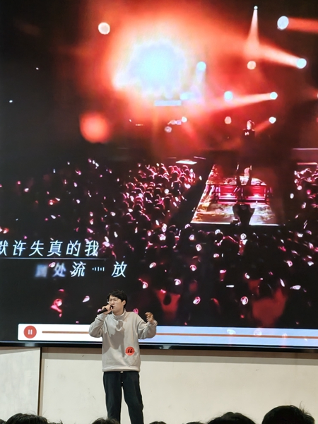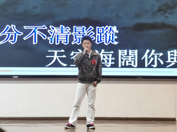 比赛核心竞演环节精彩纷呈,温情满满。选手们紧扣时代脉搏,用歌声诠释青春感悟。李晓菲同学以一曲婉转深情的《珠玉》开场,吟唱出对美好时光的珍视;罗佳俊同学以深情嗓音演绎《于是》,娓娓道出成长中的思索与坚定;张安慰同学以一曲激昂豪迈的《海阔天空》引爆全场,其独特嗓音与饱满情感,不仅激起全场合唱与持久欢呼,更将“奋进当歌、追逐梦想”的主题推向高潮。台下,由诸多选手家长组成的“亲友团”热情助威,构成现场一道温馨的风景线。更有温馨一幕:一位选手谢幕走下舞台,其父亲快步上前,将一束满载骄傲与鼓励的鲜花递给孩子。这无声的支持令人动容,充分彰显了家校协同育人的温暖力量。