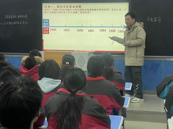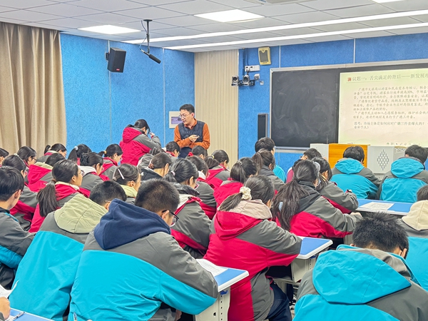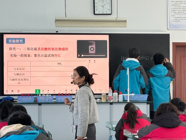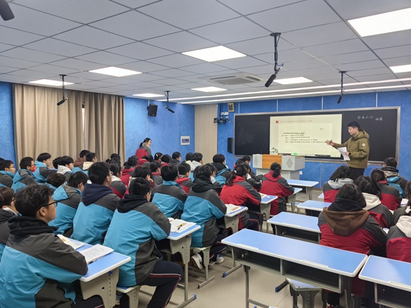 18位新教师在录播室、实验室、机房等不同场地,呈现了一堂堂精彩纷呈的汇报课。语文组李响、武双、李想、金宇轩四位老师分别带来《登泰山记》《荷塘月色》《我与地坛》《赤壁赋》的经典篇目教学,以深厚的文本解读能力和灵动的课堂设计,引领学生沉浸于文学之美;历史教师王子研以《辛亥革命》为题,带领学生回溯历史风云,感悟时代变迁;化学组张馨予、张燕杰、李茵茹三位老师聚焦《二氧化硫的性质和应用》,通过实验探究与理论讲解相结合的方式,展现了化学学科的实践魅力;数学组韩钰宣、符徐悦、张译文、姜梦鸢、施博文五位老师围绕《同角三角函数关系》《三角函数的图象与性质》等核心知识点,以清晰的逻辑推理和精准的解题指导,助力学生构建数学知识体系;物理教师黄庐山的《曲线运动》、地理教师刘玉翠的《河流地貌》、政治教师胡良皖的《贯彻新发展理念》、美术教师施心怡的《超越与延异|西方现代艺术》、信息教师刘倡源的《判断语句》,涵盖文理艺多学科,各具特色,充分展现了新教师扎实的专业功底和多元的教学风格。